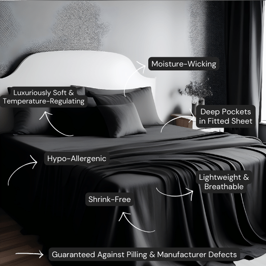 Our popular dark grey sheets are made with high quality double brushed microfiber yarns, giving them their luxurious soft feel and extreme durability. Comparable to 1800 thread count cotton sheets, with 14" deep pockets that stretch to accommodate oversized mattresses with toppers, these sheets will not disappoint! Nor will they pill, shrink, or fade and are wrinkle resistant. With 30% less bulk than regular cotton sheets, Sweet Sheets® "Poppyseed" microfiber sheets take less water to wash, and less energy to dry! They are a great addition to your bedroom decor and also make a great and luxurious gift. Available in Split King, California King, King, Queen, Double, Twin & Twin XL sizes.
